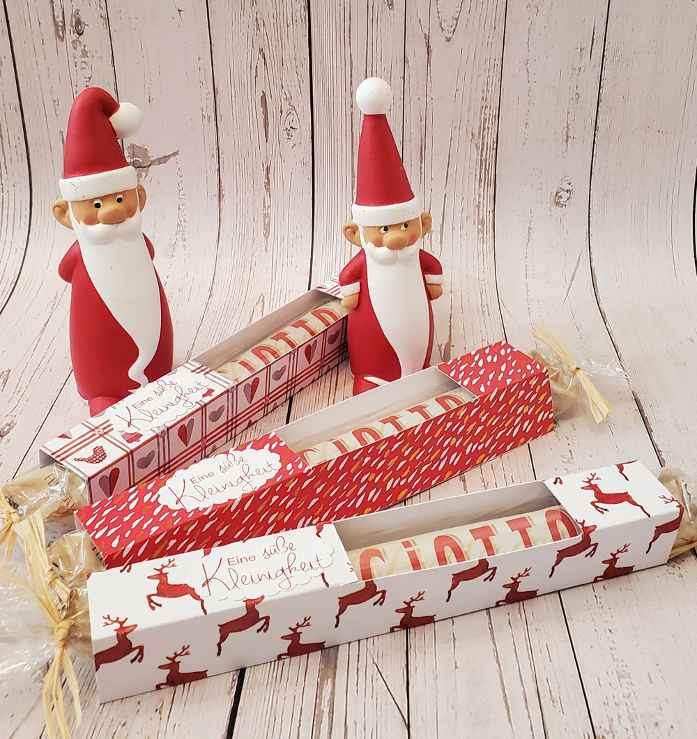 Verschiedene weihnachtlich verpackte Kleinigkeiten, um den Menschen in unserer Nähe eine Freude zu bereiten, z.B. für den Postboten, den Zeitungszusteller, der Friseurin, den Arbeitskollegen, der netten Nachbarin, ...!